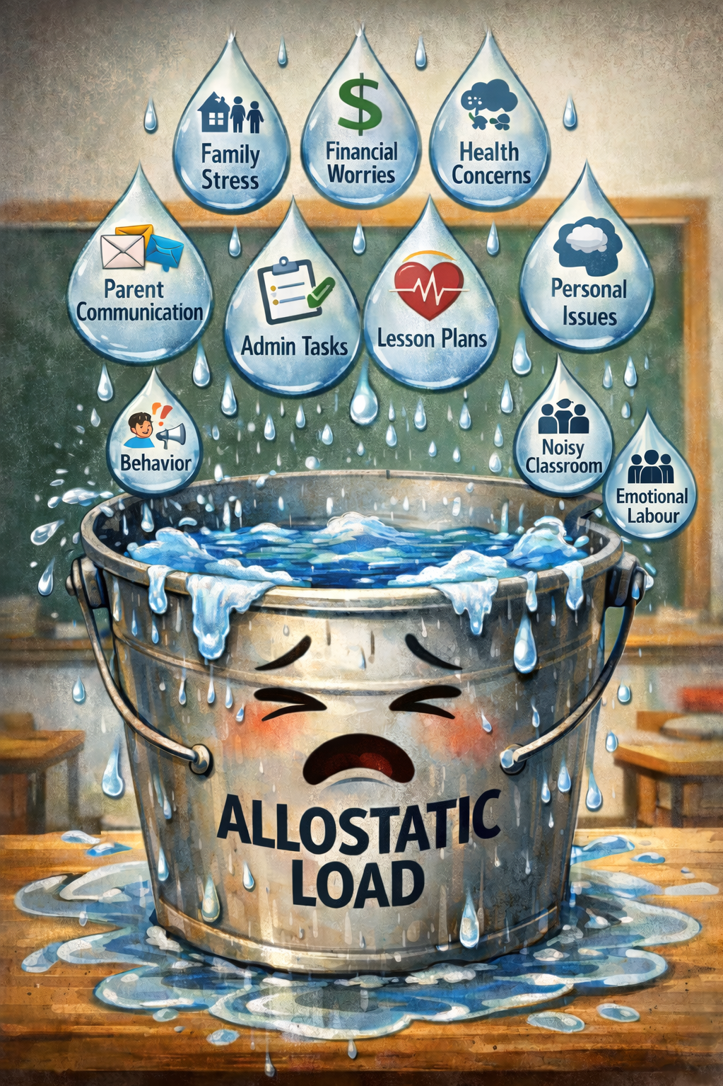 Allostatic load is the cumulative wear and tear on your body from ongoing stress. Not from one big traumatic thing, but from never actually getting back to baseline. Imagine a bucket, and every time it rains drops of water fill it up. When the rain stops, the water can evaporate and there is space in the bucket for new water once it rains again. Now imagine that the water never has a chance to evaporate. There isn’t enough time in between storms for any water to leave. The bucket begins to overflow. It never has a chance to fully rest and reset.